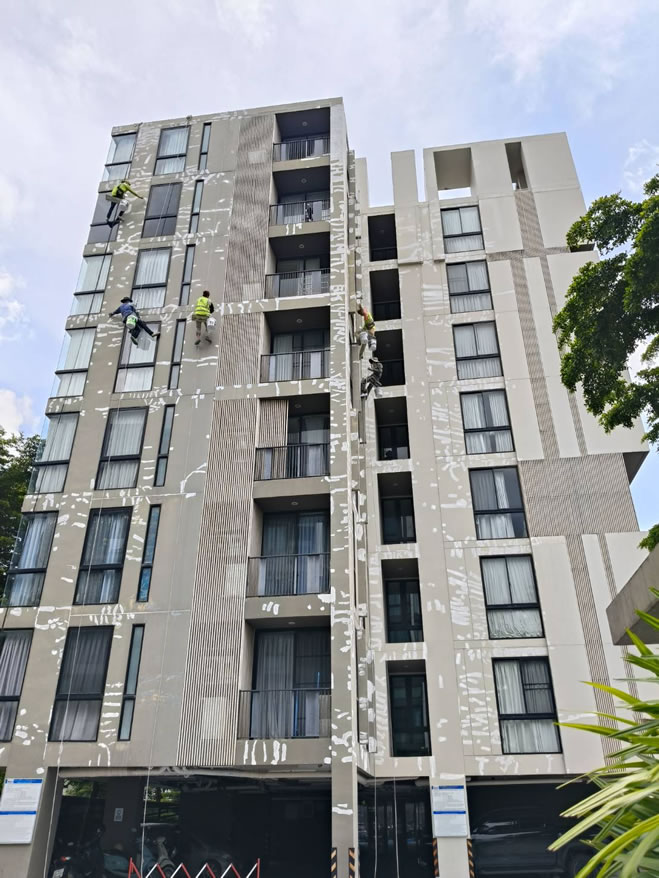 เริ่มงานทาสีโรยตัวตามกำหนด พร้อมคงคุณภาพและความเรียบร้อย
