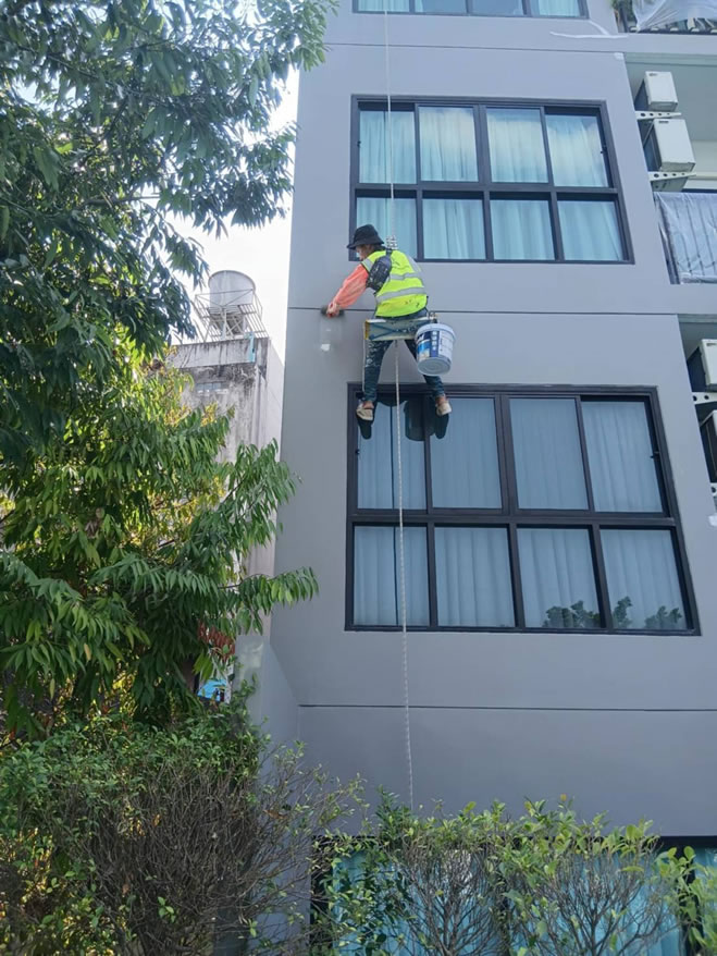 เริ่มงานทาสีโรยตัวตามกำหนด พร้อมคงคุณภาพและความเรียบร้อย