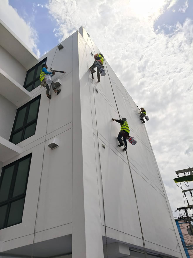 เริ่มงานทาสีโรยตัวตามกำหนด พร้อมคงคุณภาพและความเรียบร้อย