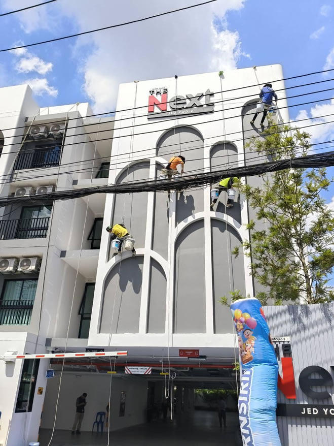 เริ่มงานทาสีโรยตัวตามกำหนด พร้อมคงคุณภาพและความเรียบร้อย