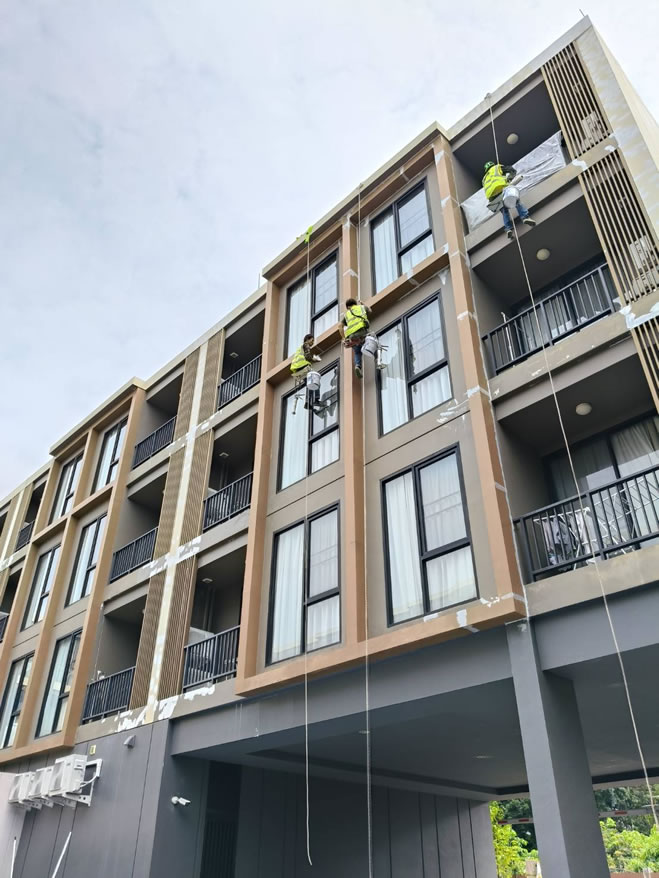 เริ่มงานทาสีโรยตัวตามกำหนด พร้อมคงคุณภาพและความเรียบร้อย
