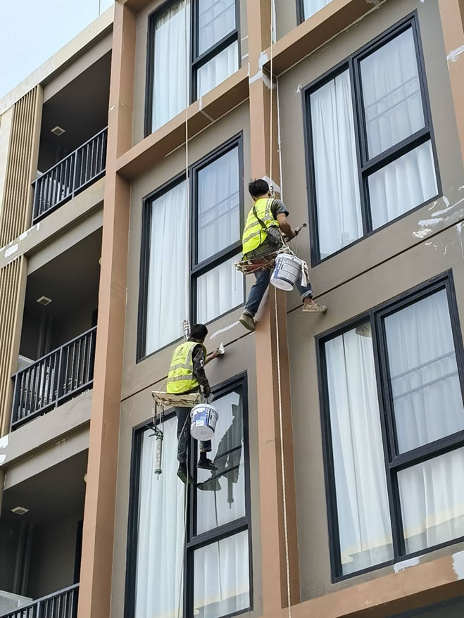 เริ่มงานทาสีโรยตัวตามกำหนด พร้อมคงคุณภาพและความเรียบร้อย